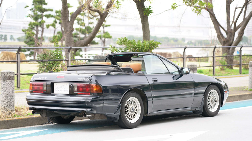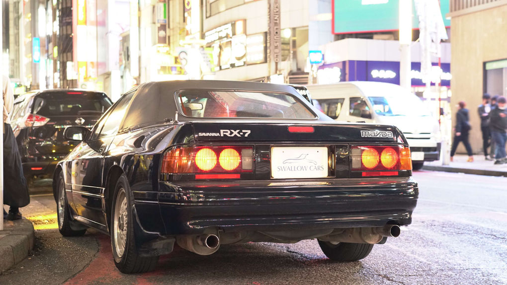 サバンナRX-3の後継として1978年3月に発表されたサバンナRX-7(SAVANNA RX-7)。1985年、SA22C型からのフルモデルチェンジで2代目となったFC3S型RX-7。新開発のマツダ・FCプラットフォームに基づいて開発されており、リアサスペンションは独立懸架化とされ、セミトレーリングアームのマルチリンクとなっており「走行性能と走りの感覚」の面で大幅な改良を図り、より一層魅力ある本格スポーツカーとして仕上げられています。エンジンはインタークーラー付きターボの13B型を搭載。フロントブレーキには日本車初の対向4ピストンのアルミキ ャリパーを採用。ポルシェ・944との類似性が自動車雑誌などで話題となり、「プアマンズ・ポルシェ」と呼ばれながら性能面では0-100 km/h加速時間7秒弱、最高速度はメーカーテストで238.5 km/hを記録しています。1987年8月、ロータリーエンジン生誕20周年を記念してカブリオレ仕様(FC3C型)が登場。電動ソフトトップを装備したロータリーエンジンを搭載するオープンカーはNSU・ヴァンケルスパイダー以来であり、マツダでは当モデルが唯一の存在でした